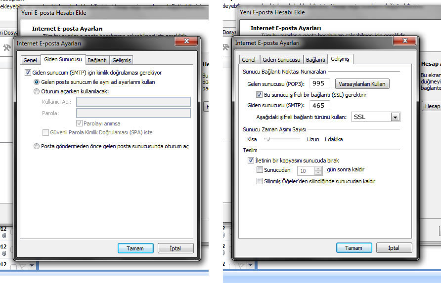 Not : Gelen maillerin kopyasının sunucuda kalmasını istiyorsanız "İletinin bir kopyasını sunucuda bırak" seçeneğini işaretleyin.